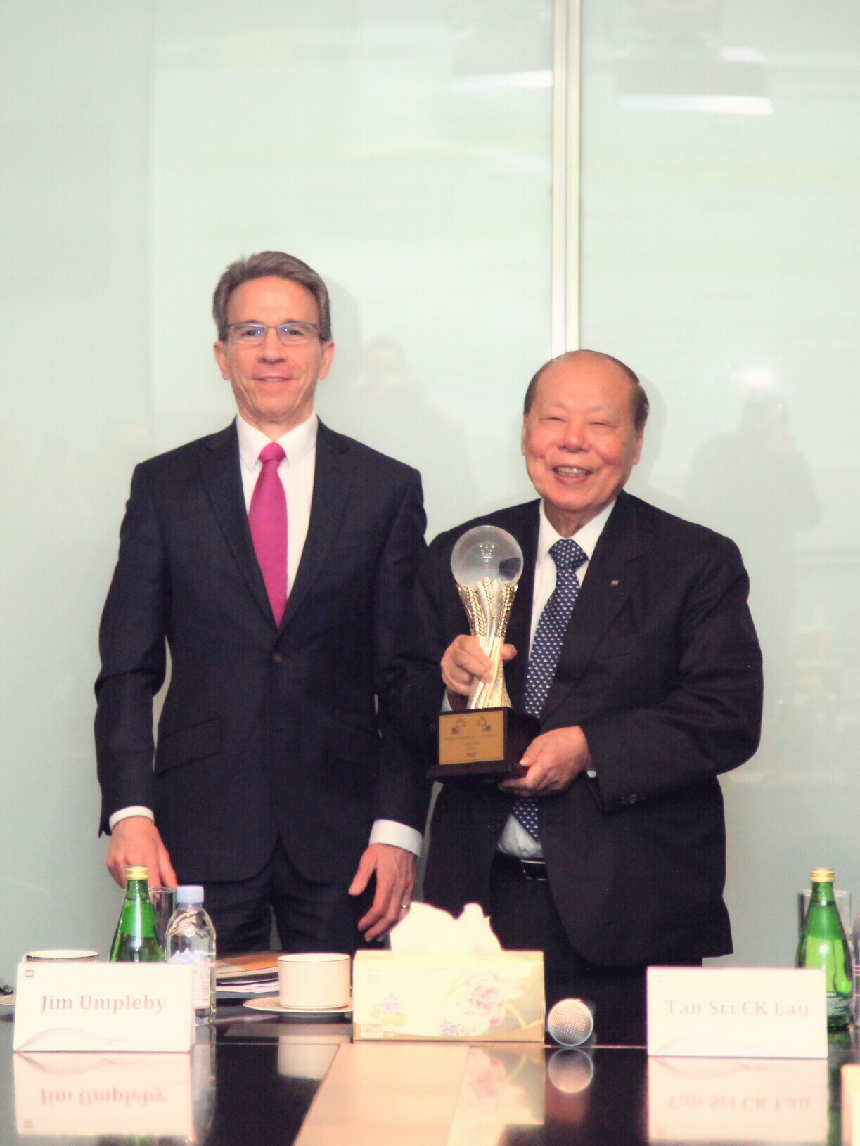 | 左:卡特彼勒首席執行官安博駿 右:利星行集團董事局主席丹斯里劉楚群 |